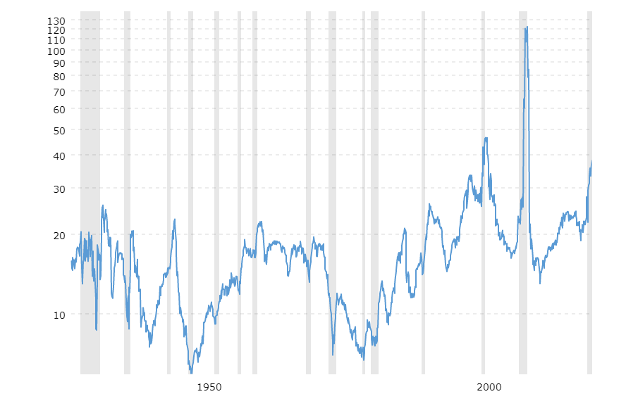 (courtesy of S&P 500 PE Ratio – 90 Year Historical Chart)